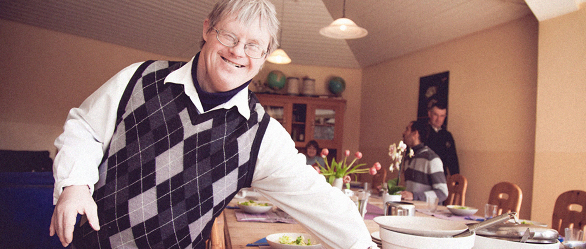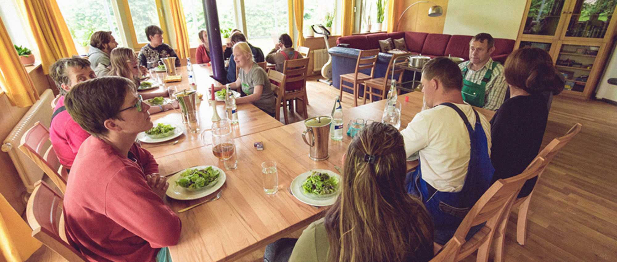 Unsere Wohngruppen sind die Keimzelle dafür: Hier leben bis zu elf Menschen mit Assistenzbedarf unter einem Dach. In barrierefreien Wohnhäusern oder in einem heimeligen Bauernhof, im Dorf oder in den Außenwohngruppen in den umgrenzenden Städten – das Zusammenleben richtet sich nach den Wünschen und Fähigkeiten der Bewohner: Denn jeder kann hier sein, wie er ist.